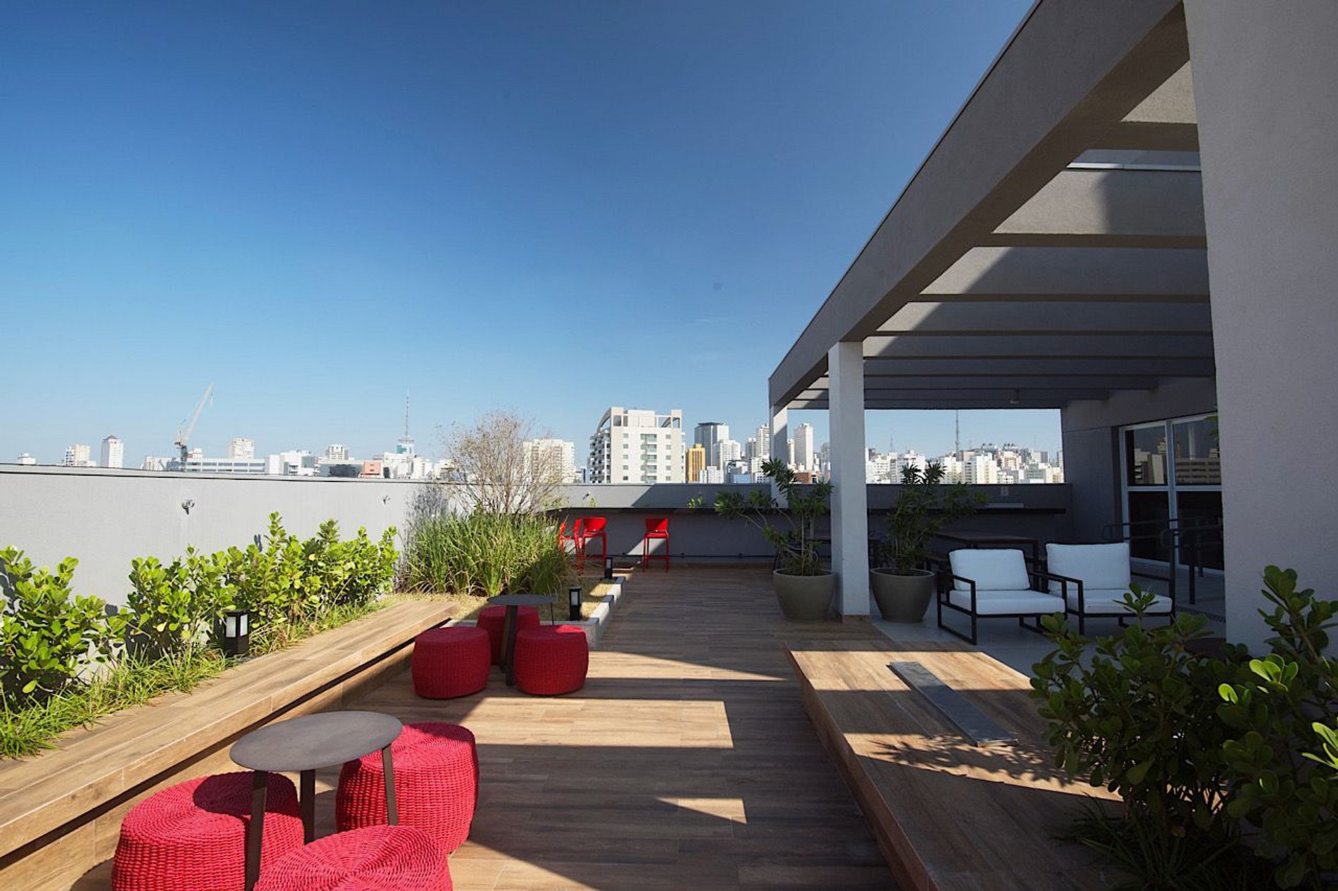 Além das instalações internas, o prédio oferece área de estar, vista do rooftop além da área de coworking com Wi-Fi, no térreo.