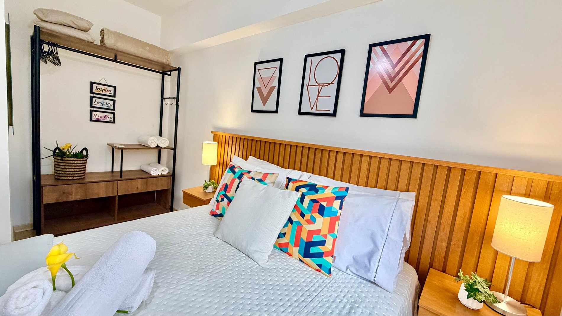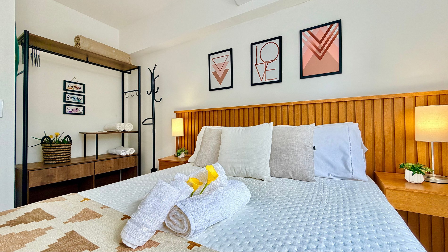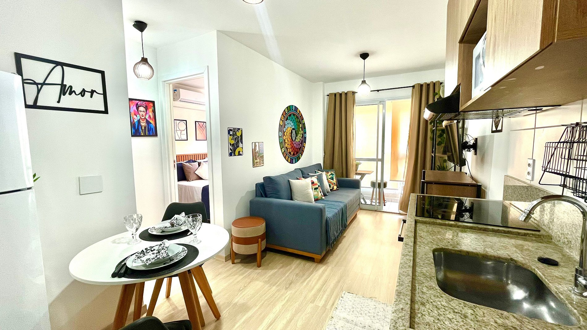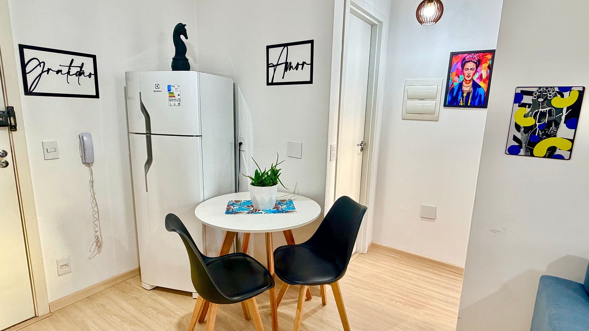 O espaço com 40 m² tem decoração cheia de personalidade, ambientes integrados e equipamentos para acomodar com conforto até 4 pessoas, dispondo de uma cama e um sofá cama de casal.