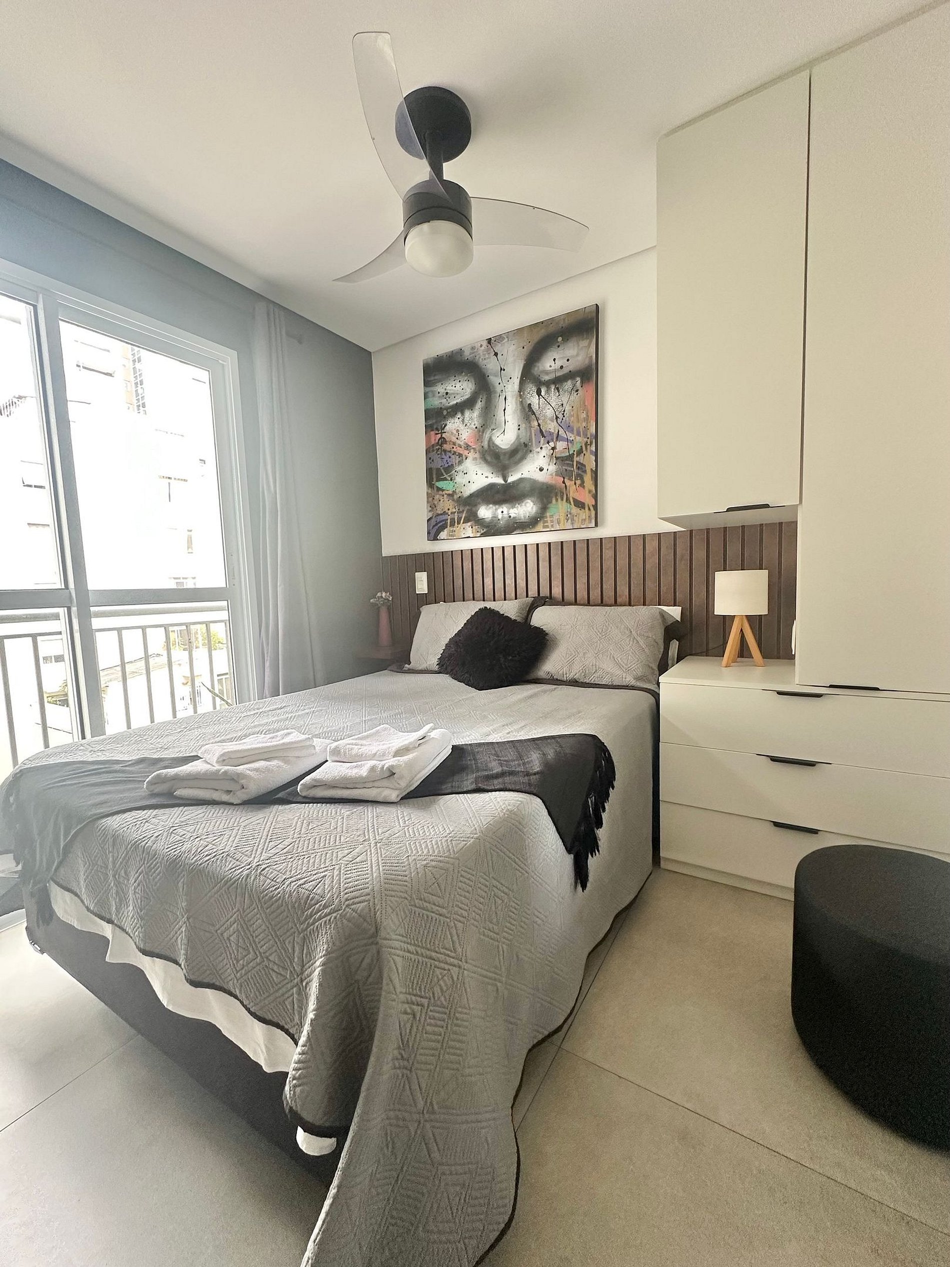 O espaço com 20 m² tem decoração cheia de personalidade, ambientes integrados e equipamentos para acomodar com conforto 2 pessoas, dispondo de uma cama de casal. Toda a privacidade para um café ou drink, assistir a um filme na Smart TV ou mesmo para desfrutar da área comum do condomínio.