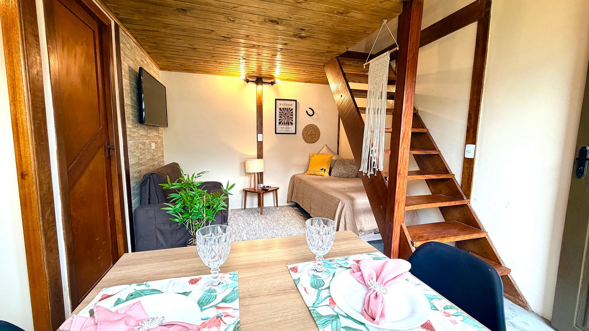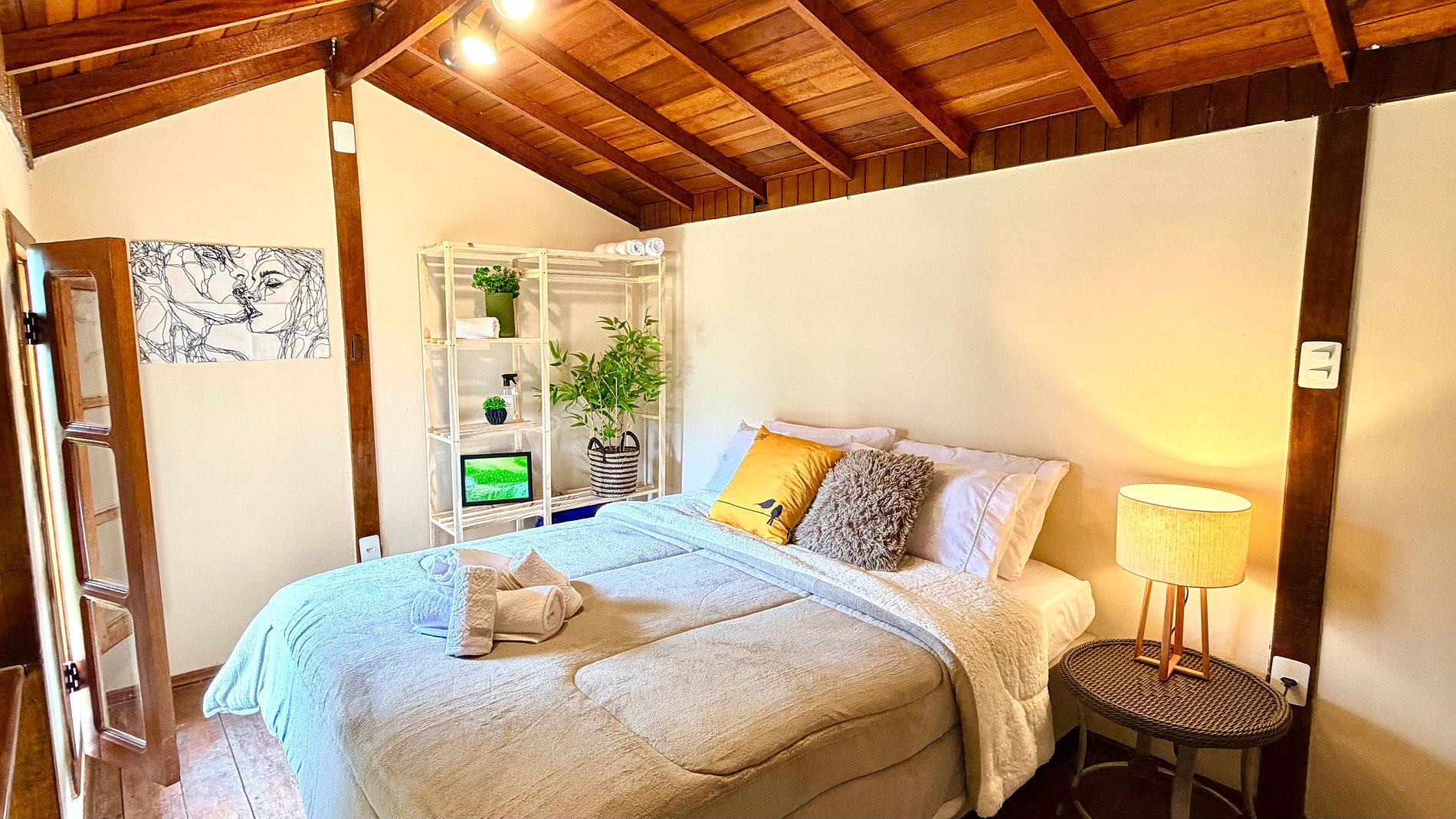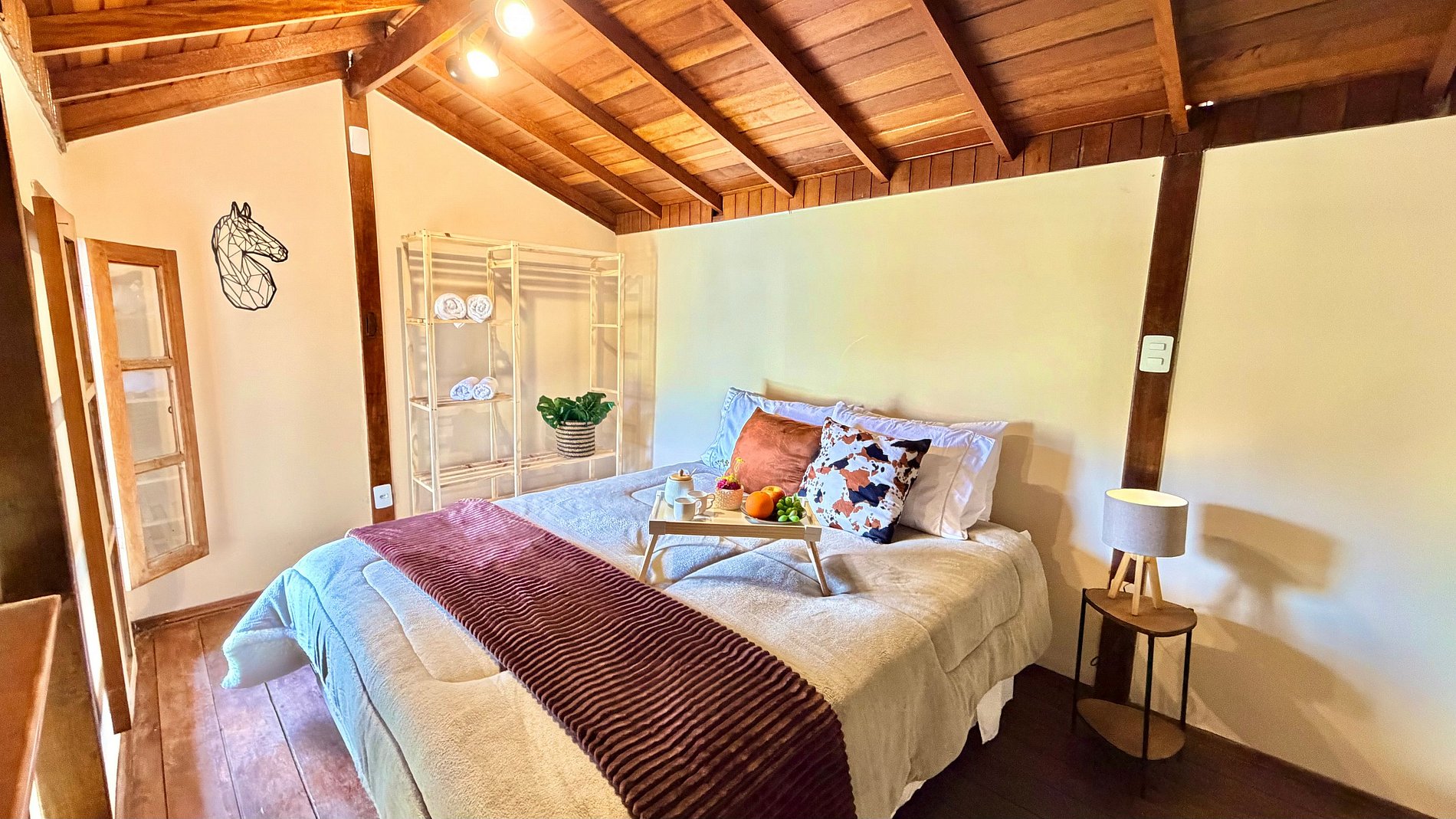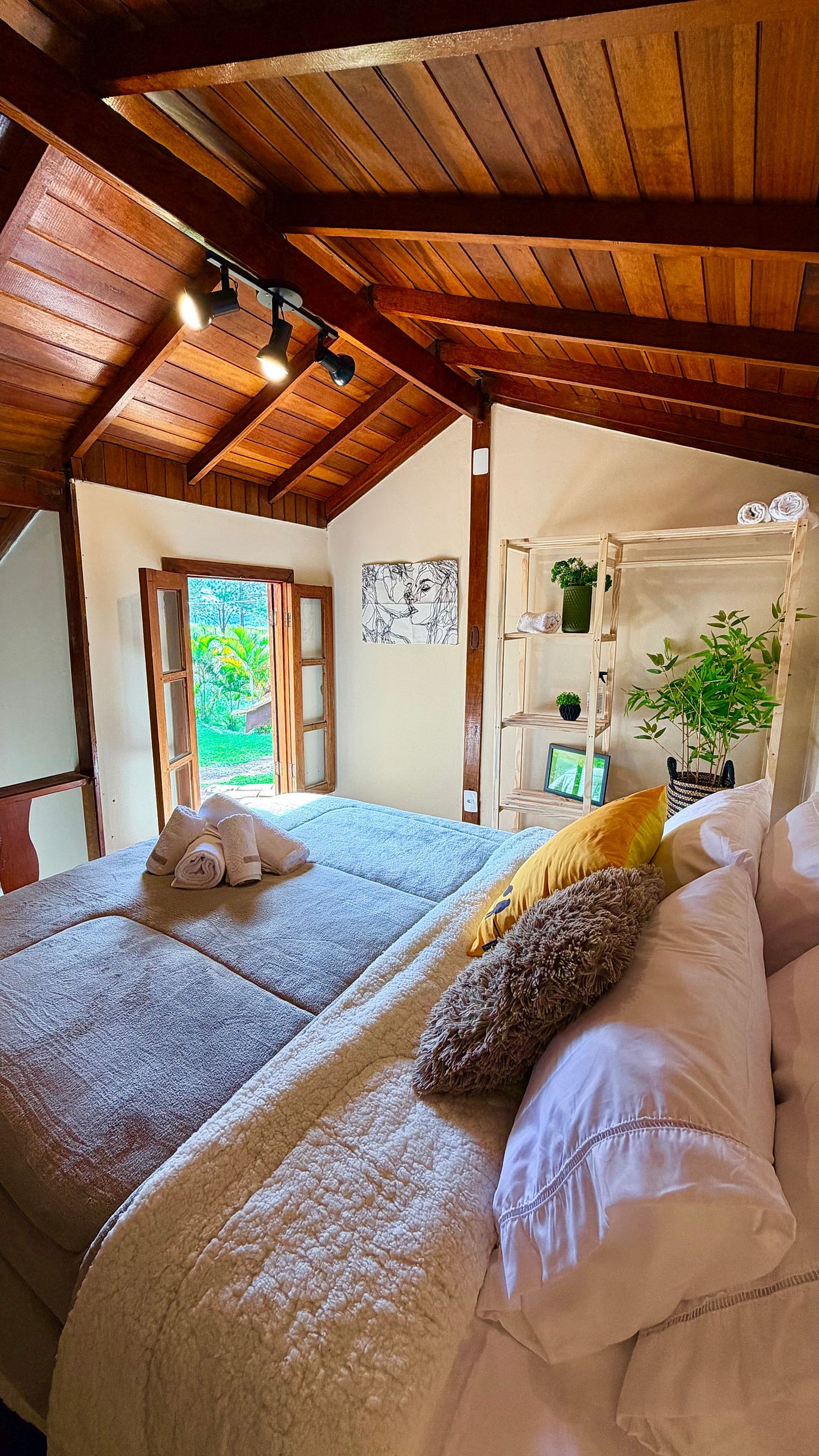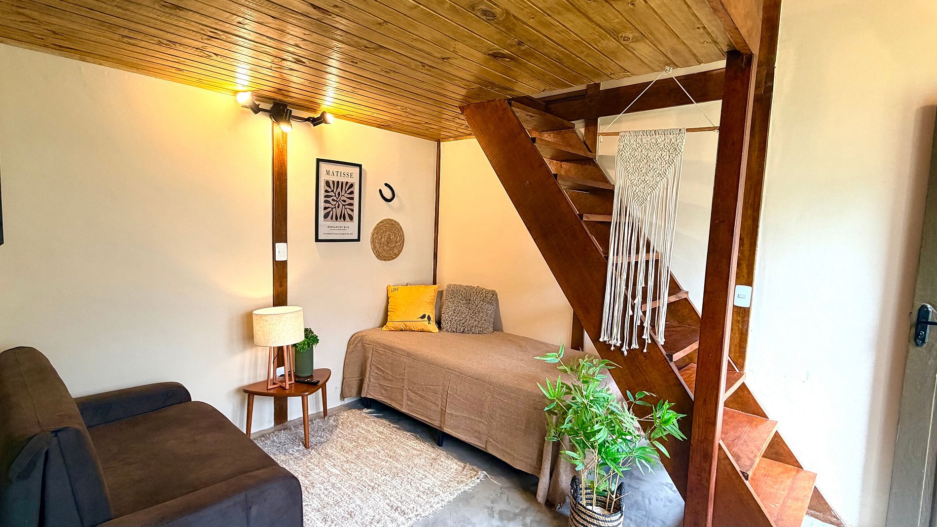 Ambiente Aconchegante: O mezanino conta com uma cama Queen ampla e confortável, garantindo noites de sono tranquilas e revigorantes.