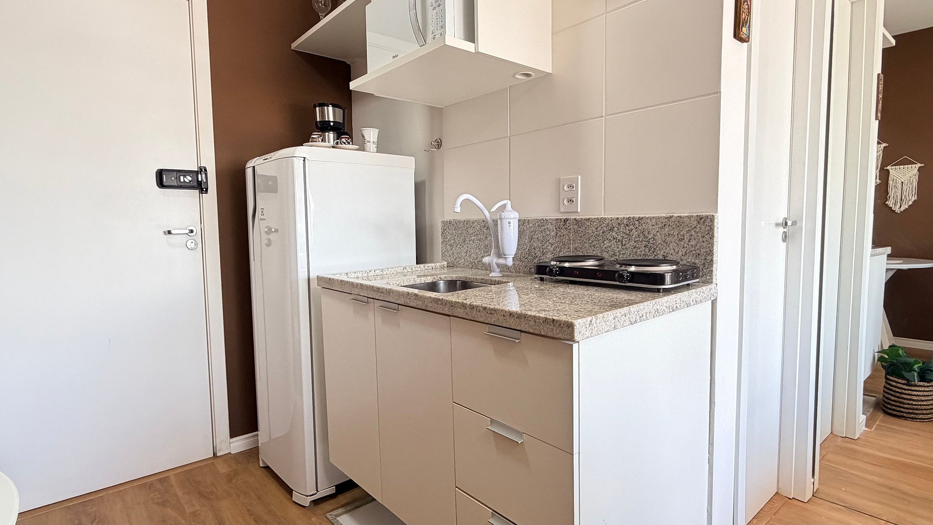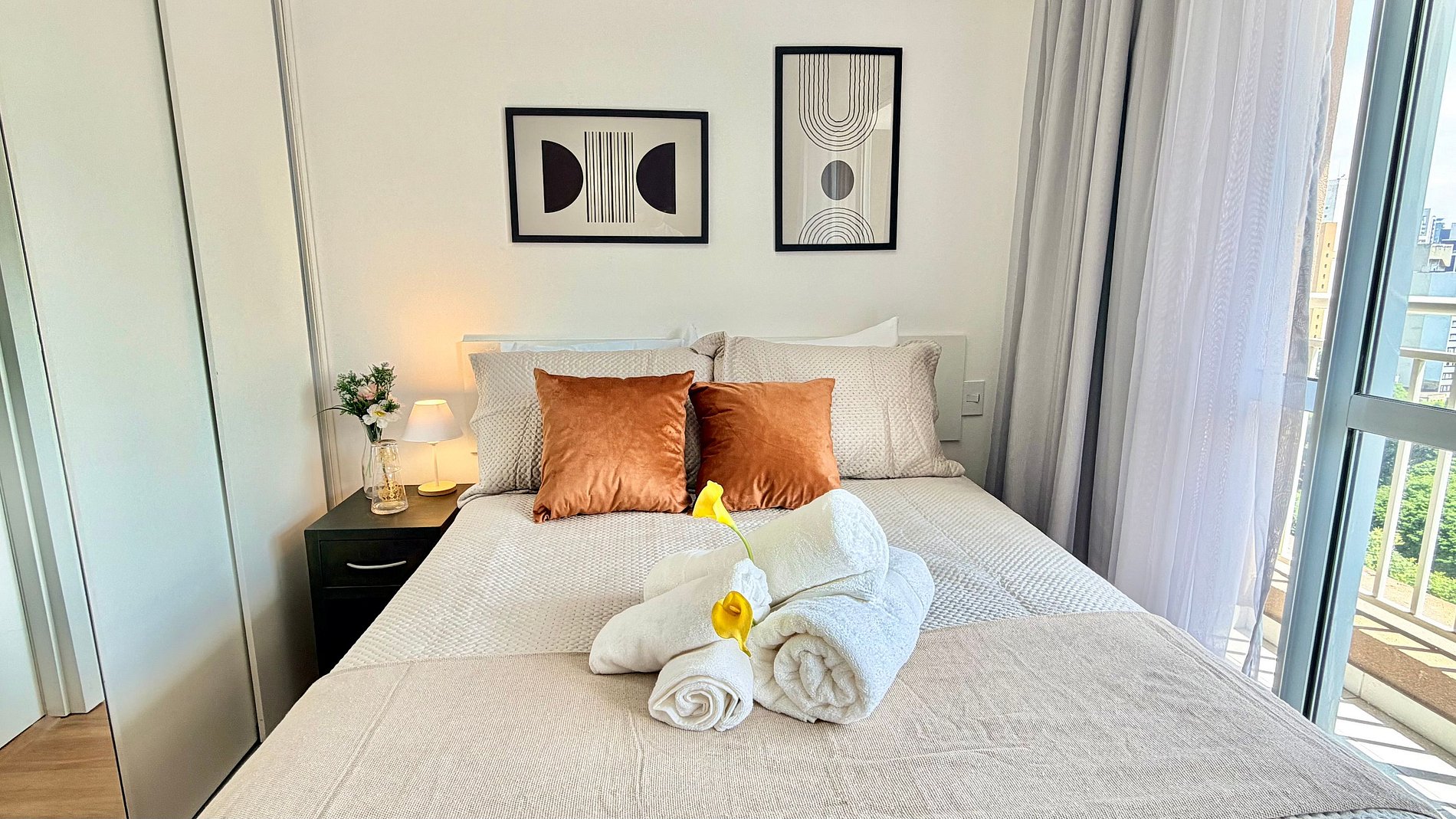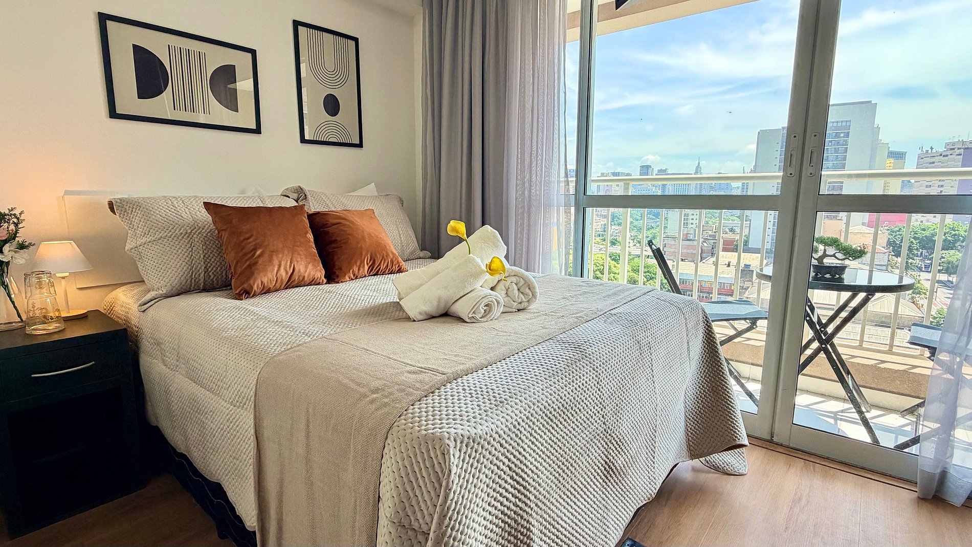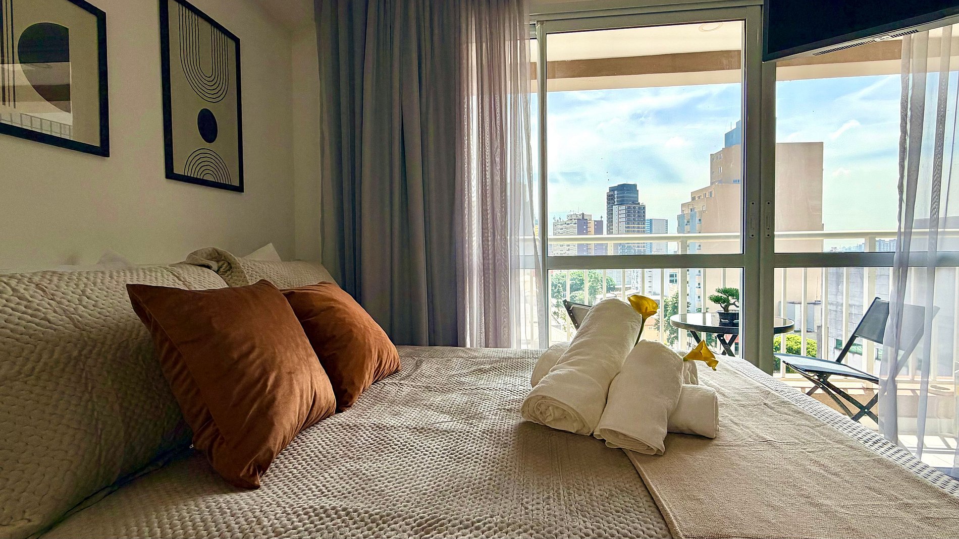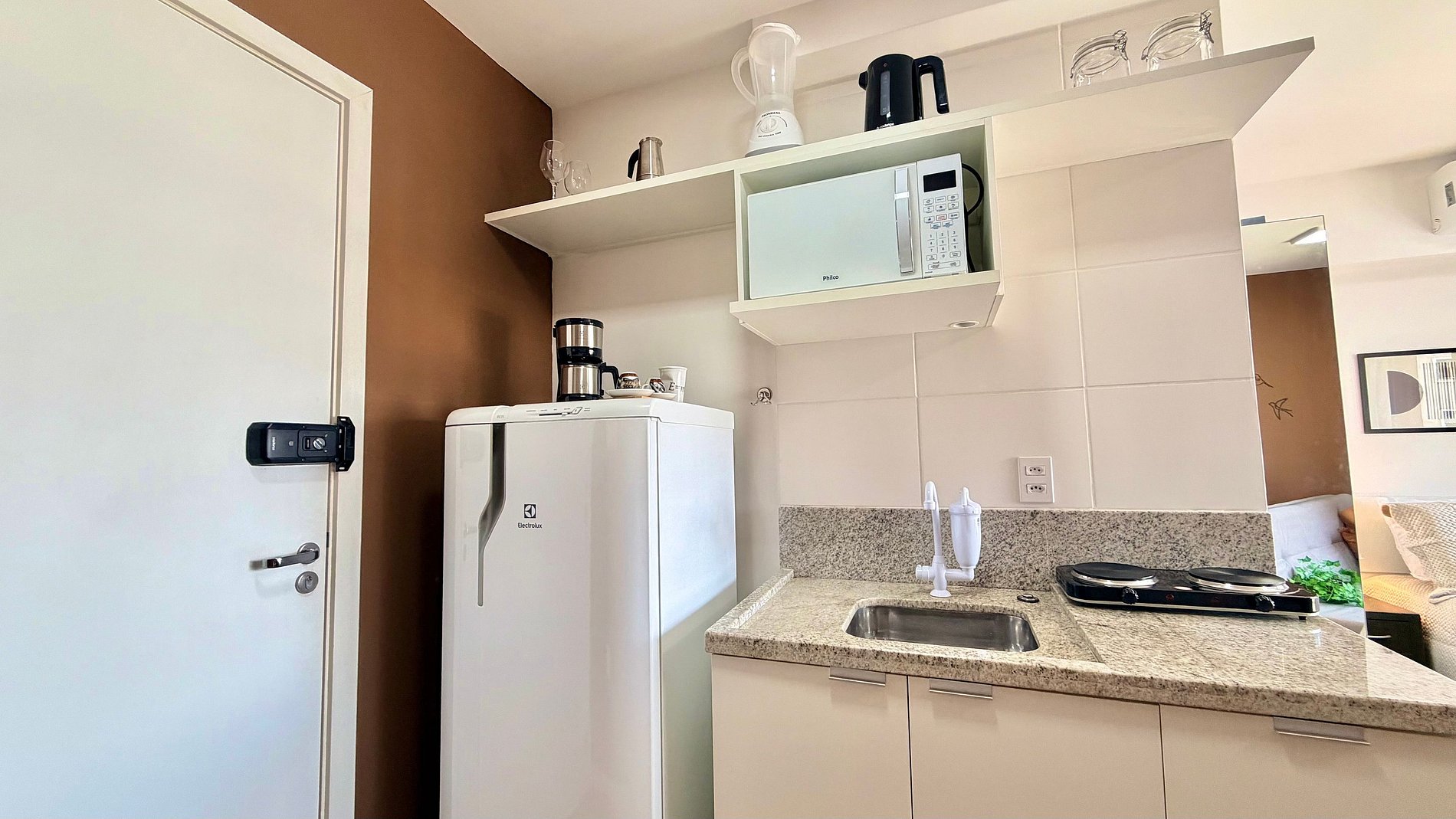 ESTRUTURA COMPLETA: Prédio moderno com TV Smart, cozinha completa, roupa de cama e banho, Rooftop, Academia, Coworking e Mercado no térreo.