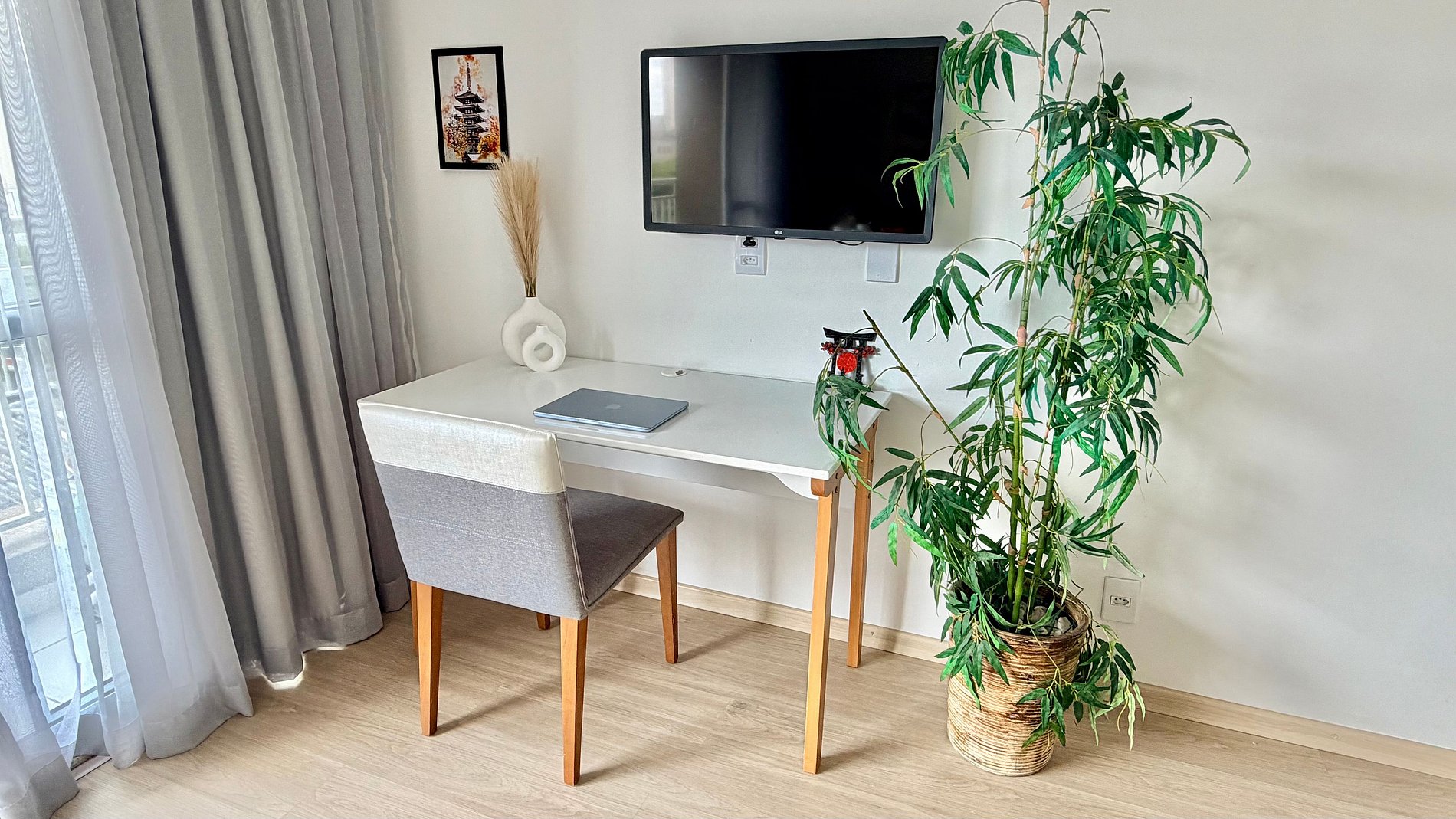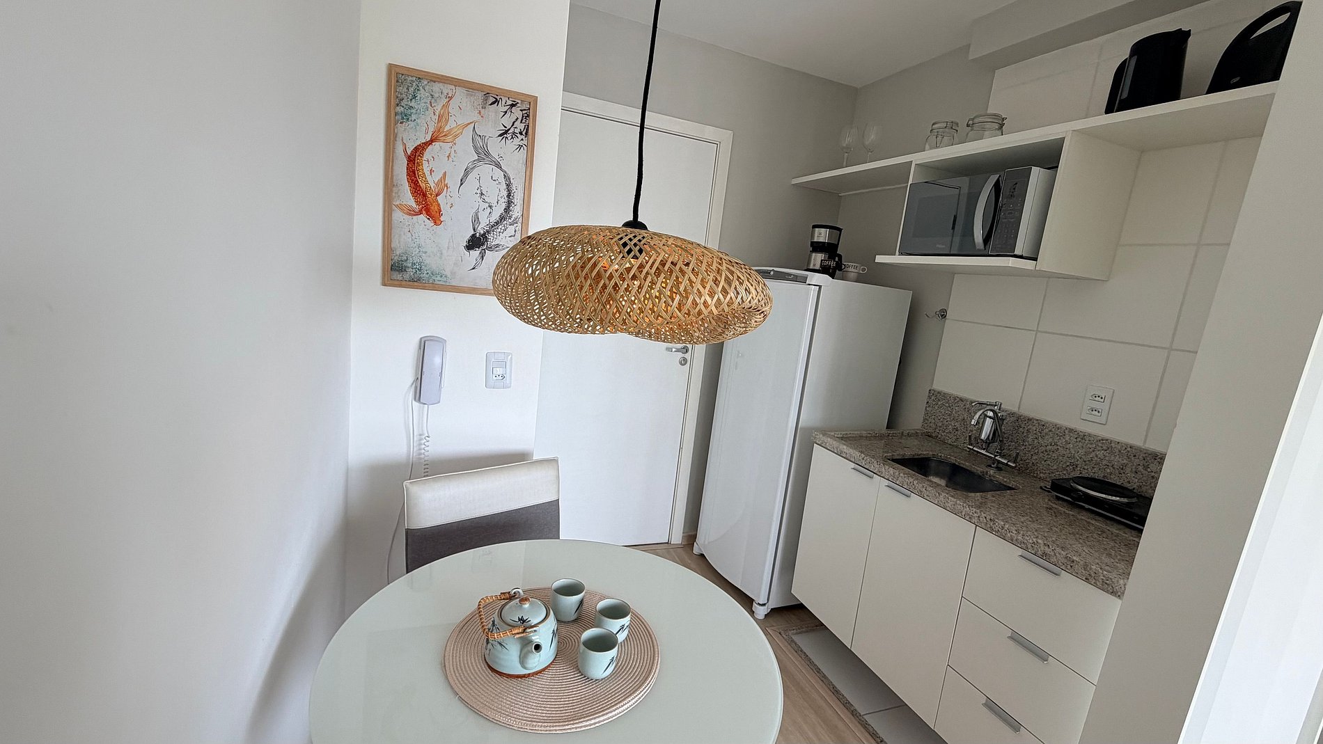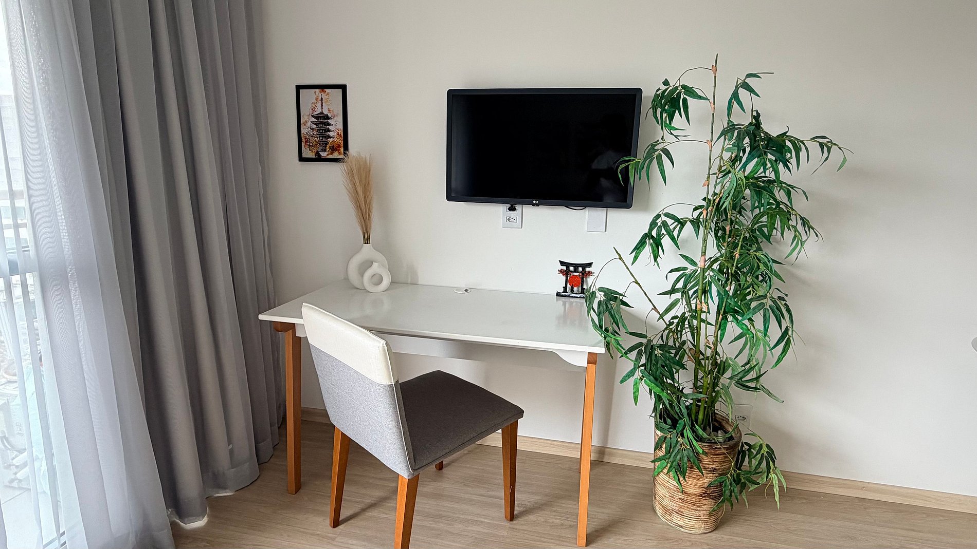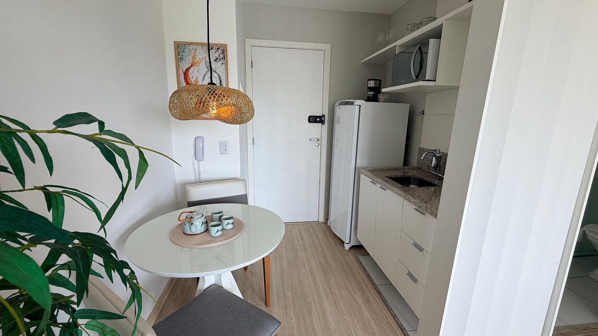 Descubra o equilíbrio perfeito entre a energia vibrante da Liberdade e a serenidade do design Japandi. Este estúdio foi planejado para ser o seu retiro particular: minimalista, funcional e extremamente acolhedor.
