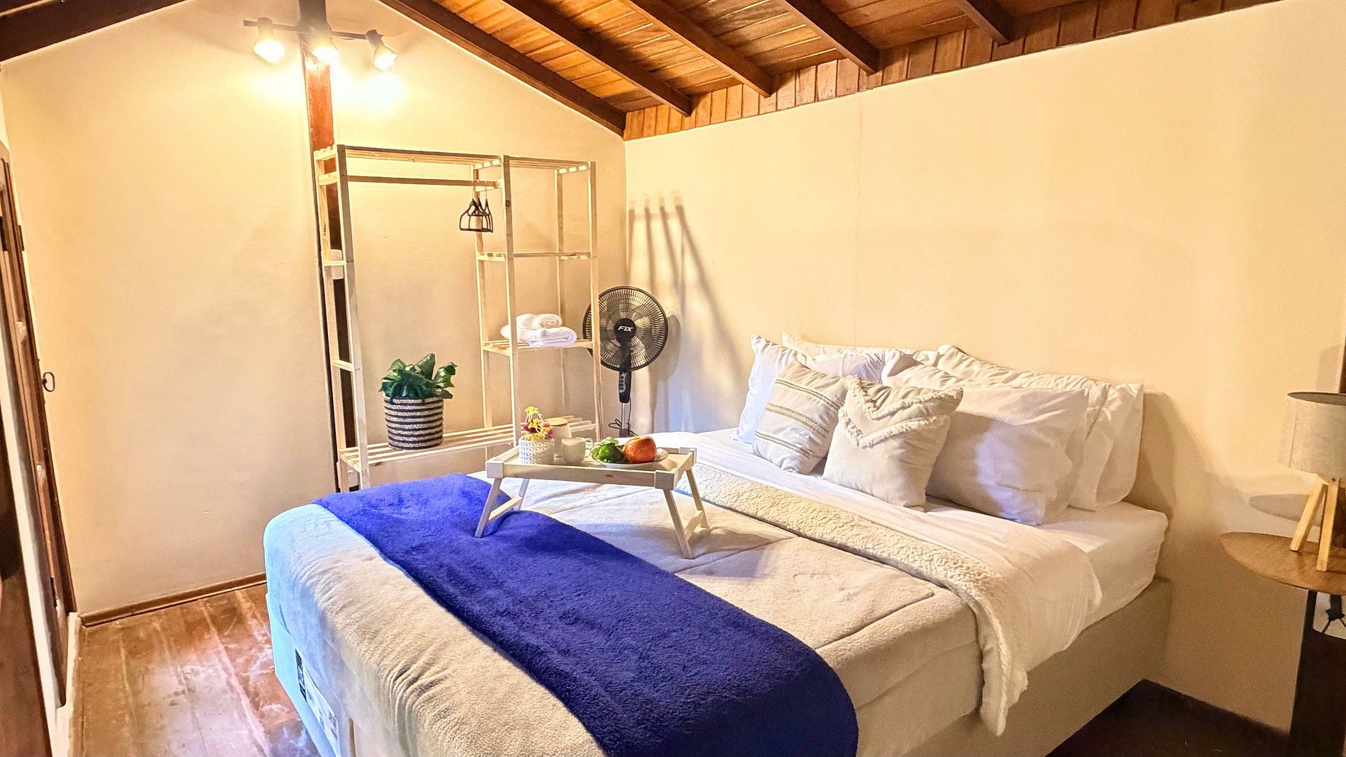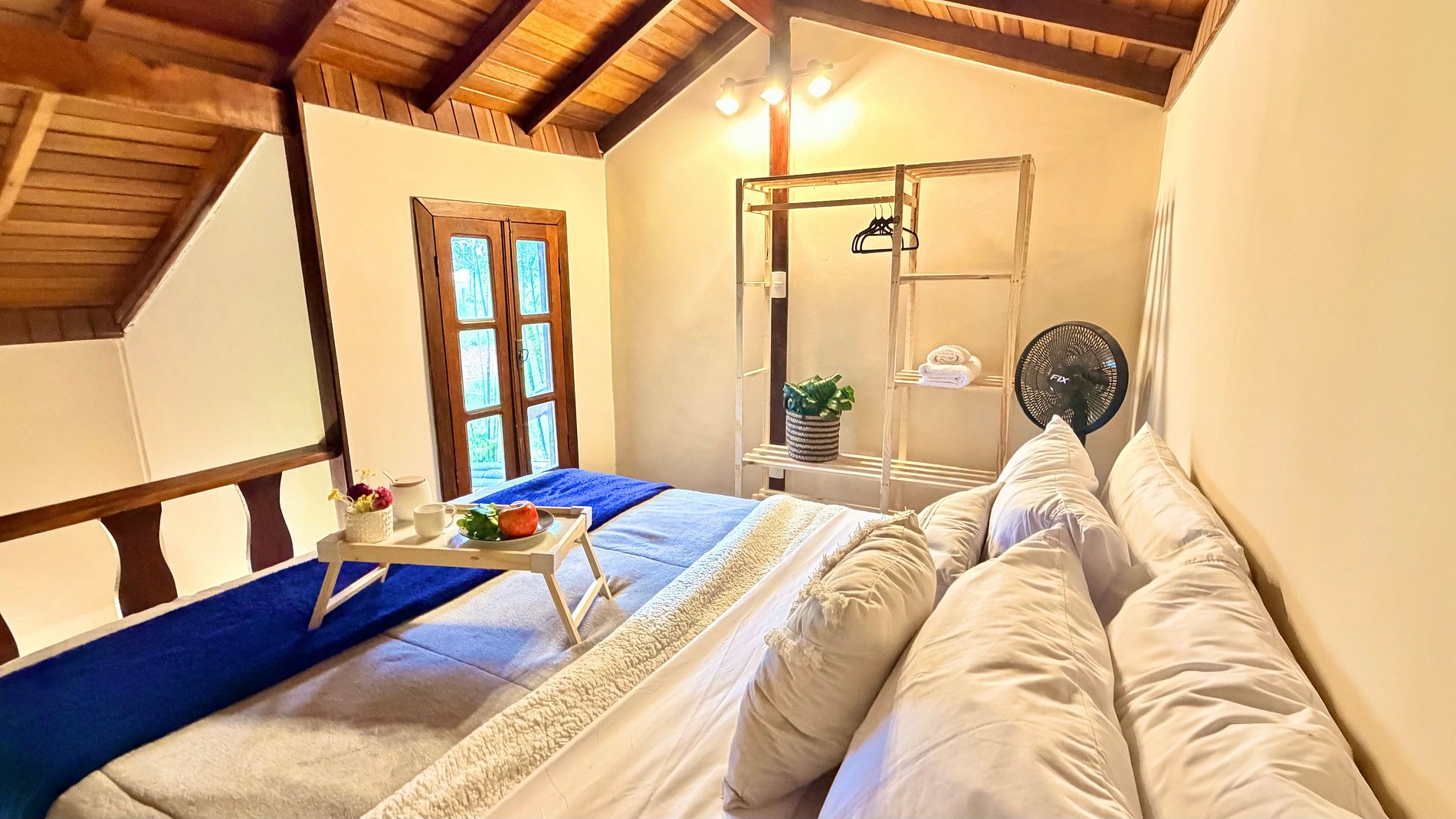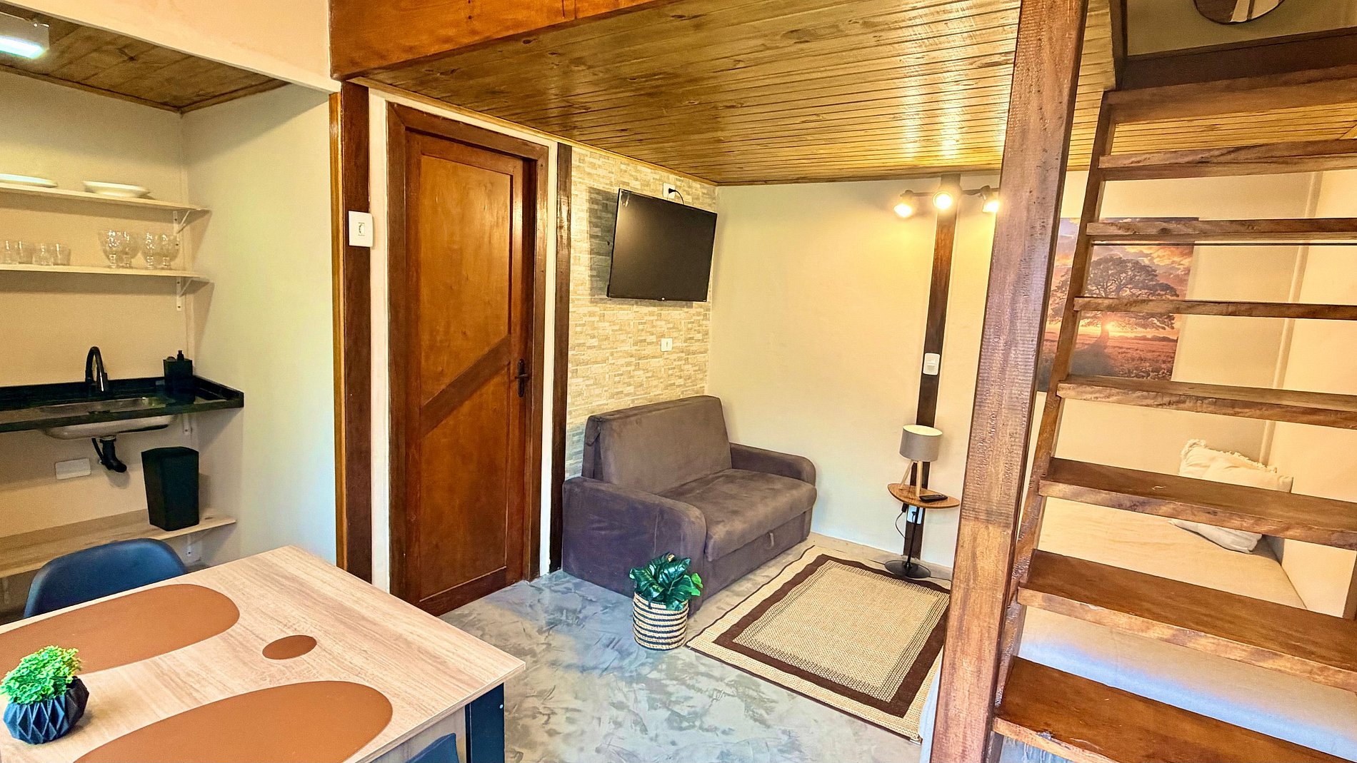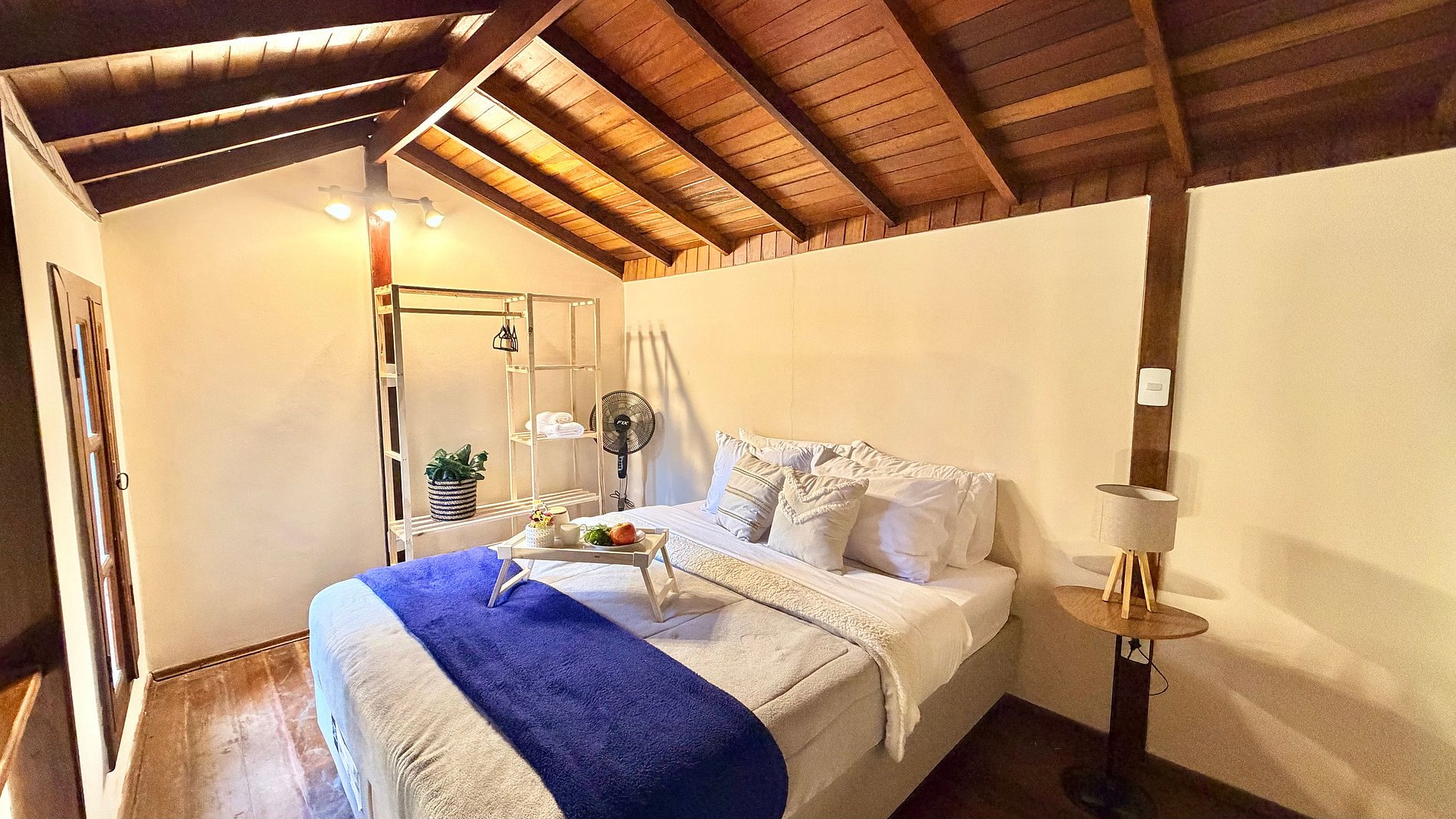 Ambiente Aconchegante: O mezanino conta com uma cama Queen ampla e confortável, garantindo noites de sono tranquilas e
