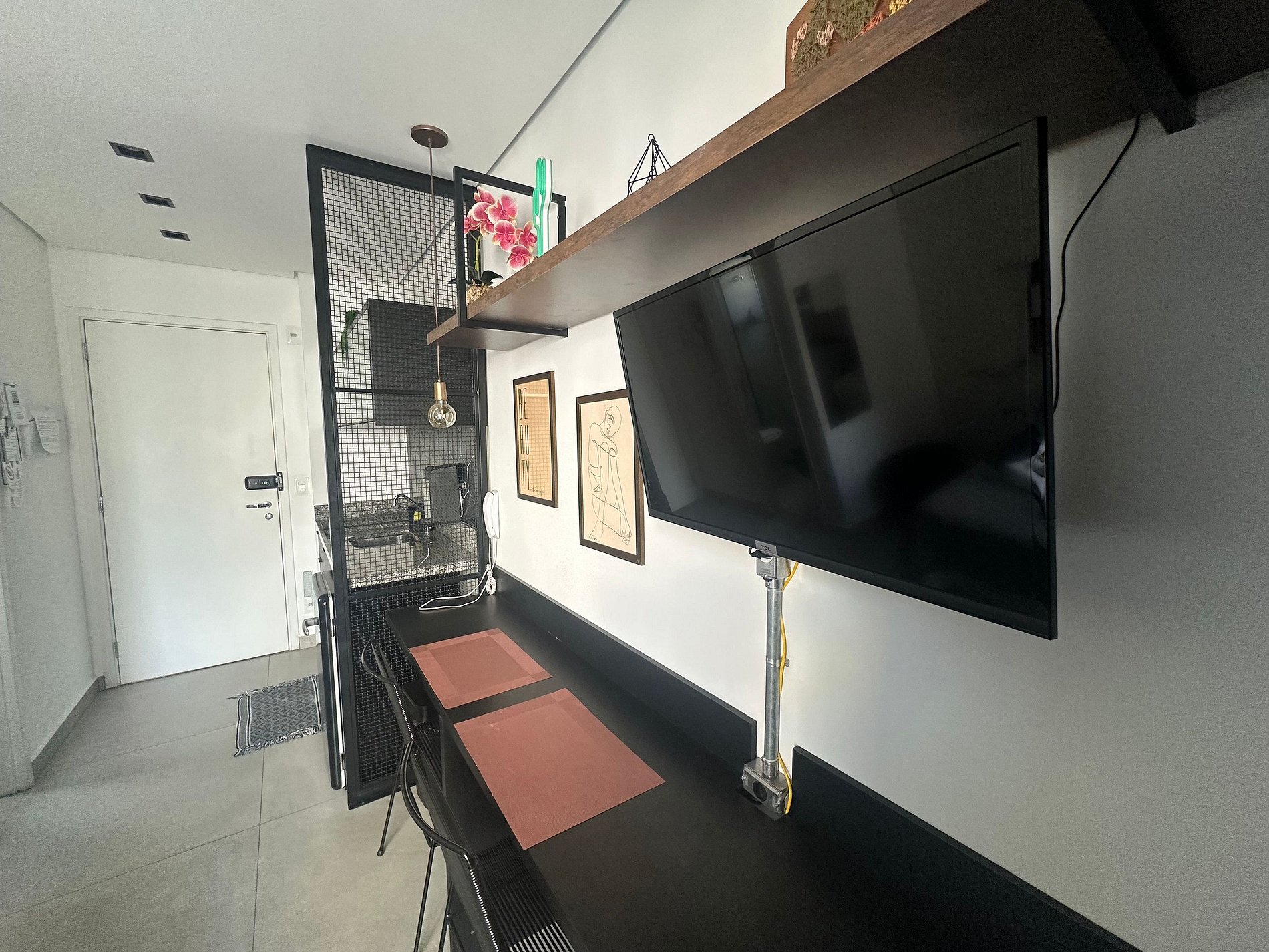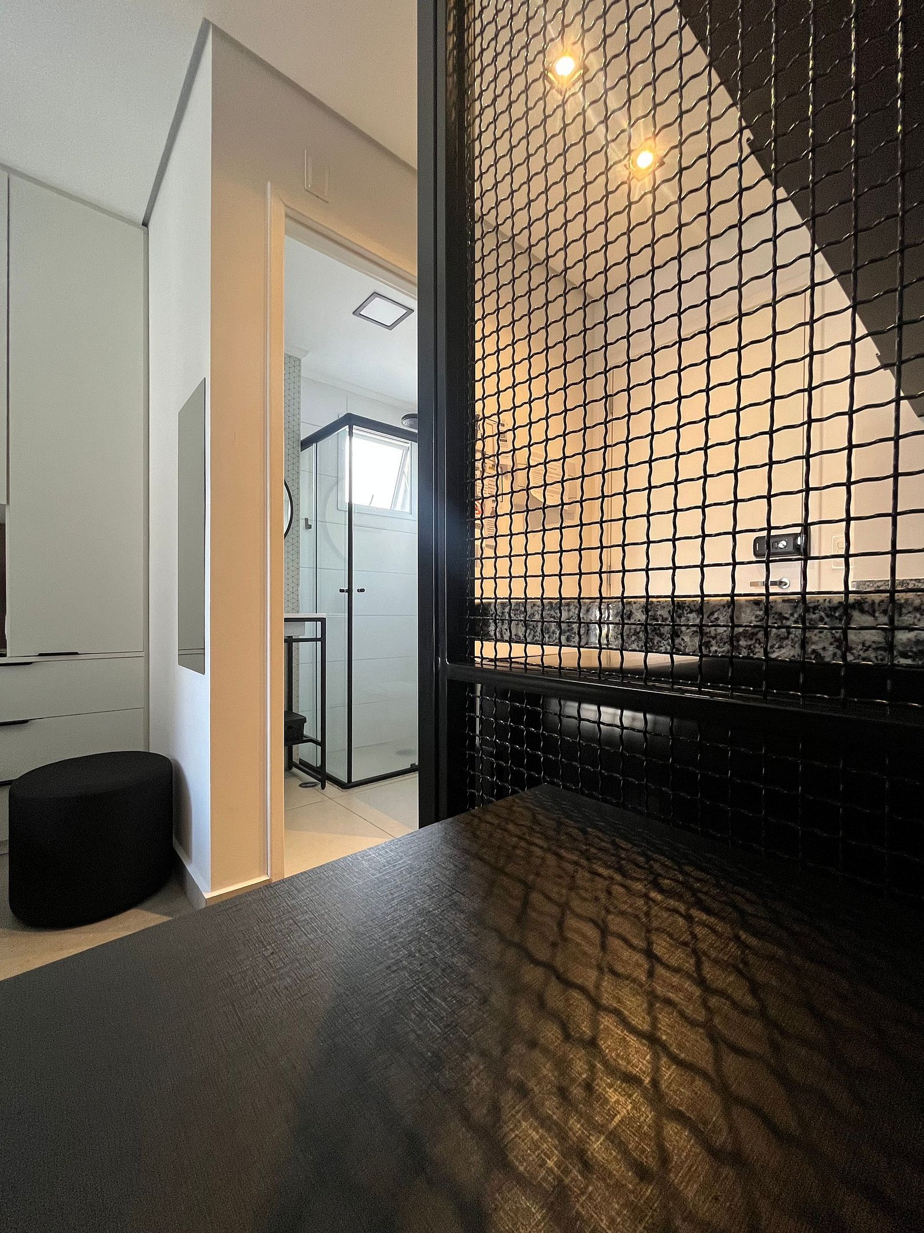 O espaço com 20 m² tem decoração cheia de personalidade, ambientes integrados e equipamentos para acomodar com conforto 2 pessoas, dispondo de uma cama de casal. Toda a privacidade para um café ou drink, assistir a um filme na Smart TV ou mesmo para desfrutar da área comum do condomínio.